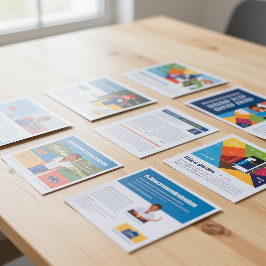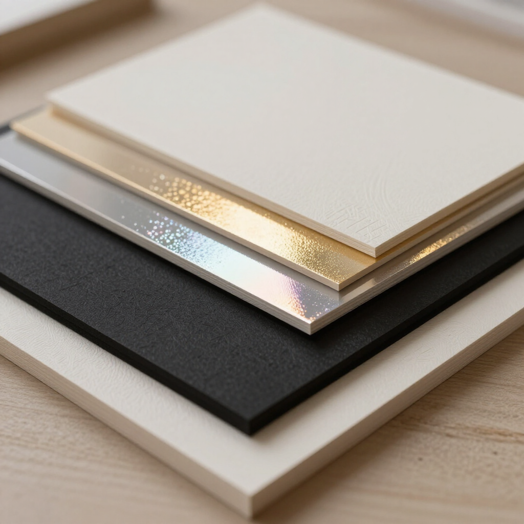 We offer a wide selection of paper stocks including matte, gloss, recycled, and specialty finishes. Options also include laminated surfaces, embossed textures, foil stamping, and custom die-cut shapes to enhance your printed materials.